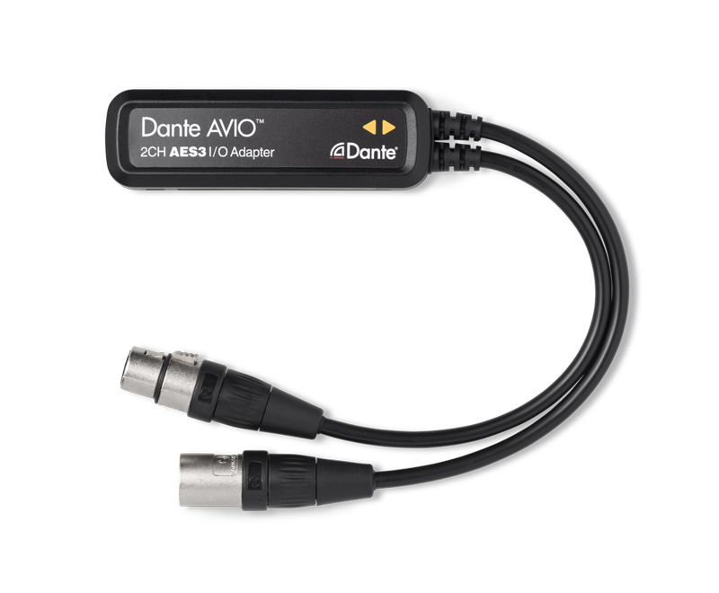 The Dante AVIO AES3/EBU Adapter supports 2x2 channels, with high-quality XLR input and output connectors and built-in asynchronous sample rate conversion.