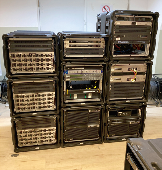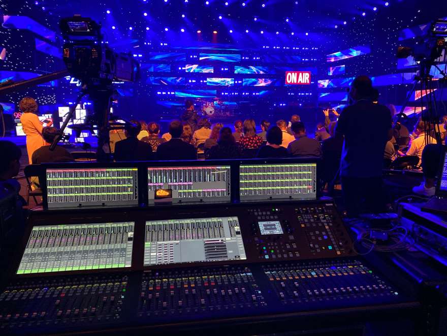 The main console is a 48-fader System T S500m, a mobile version of the System T designed to be 25% lighter with a reduced form factor, which comes complete with flightcases and is suited to EFP applications. With a 16-fader System T S300 as the backup console, the whole system also includes four SB32.24 stageboxes (mic/line input and output), three A16.D16 Dante I/Os, one D64 AES network interface and three MADI-Bridges to provide a wealth of I/O options.