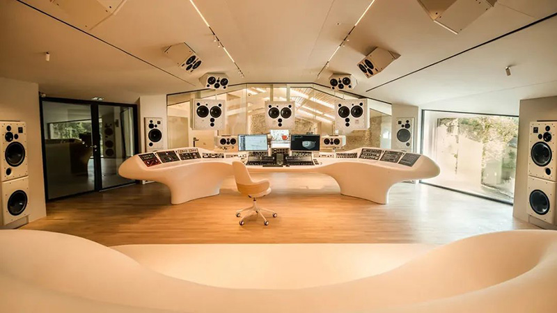 (Image credit: Mathieu Spadaro)The finished refurbishment includes the stunning Studio One, which has 25-foot high ceilings and a 1,000-square-foot control room that’s separated from the 3,500-square-foot wood and stone tracking space by a floor-to-ceiling expanse of glass. The control room supports Dolby Atmos productions, and the new custom-designed Spaceship console sits alongside the original SSL 4000 G+ desk.