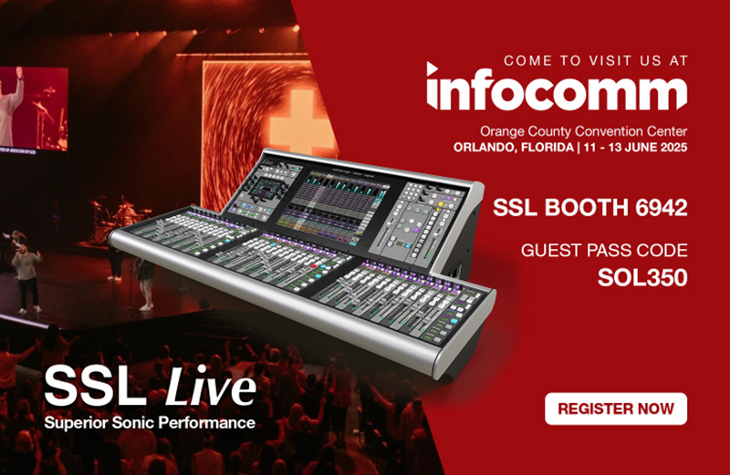 SSL is pleased to be exhibiting at InfoComm once again, and looks forward to meeting with attendees. For a free SSL VIP guest pass, use code SOL350. To book a personal appointment in advance with an SSL expert, please visit the InfoComm Events Page.